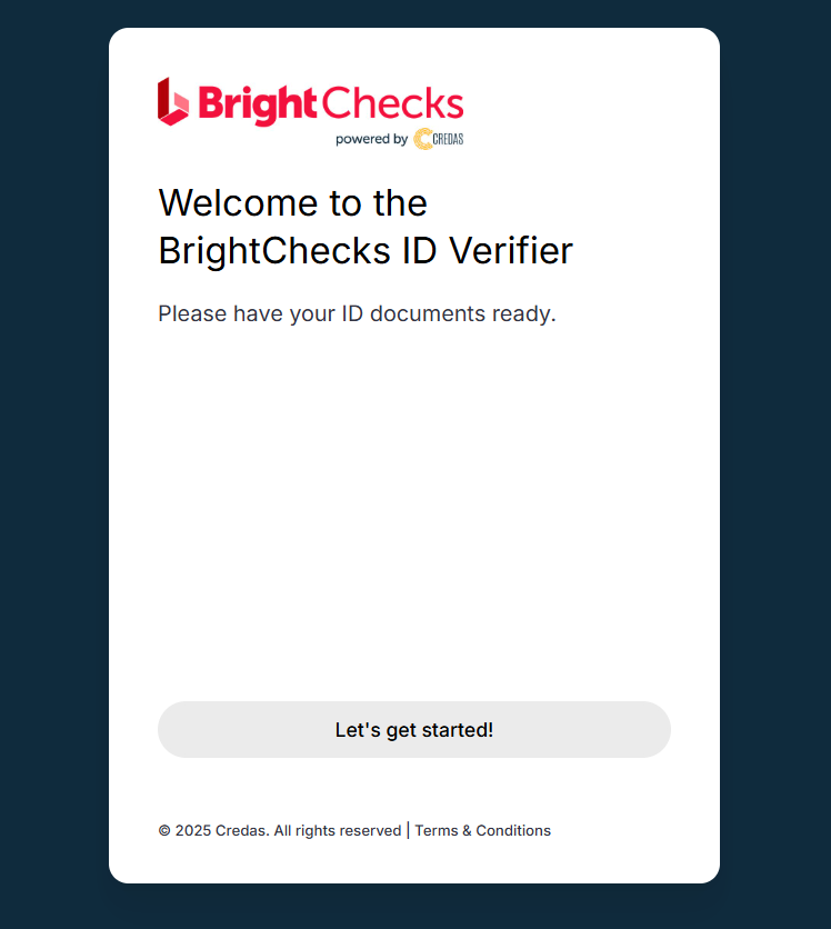 - The individual will then receive a secure link to our BrightChecks verification journey, powered by Credas.